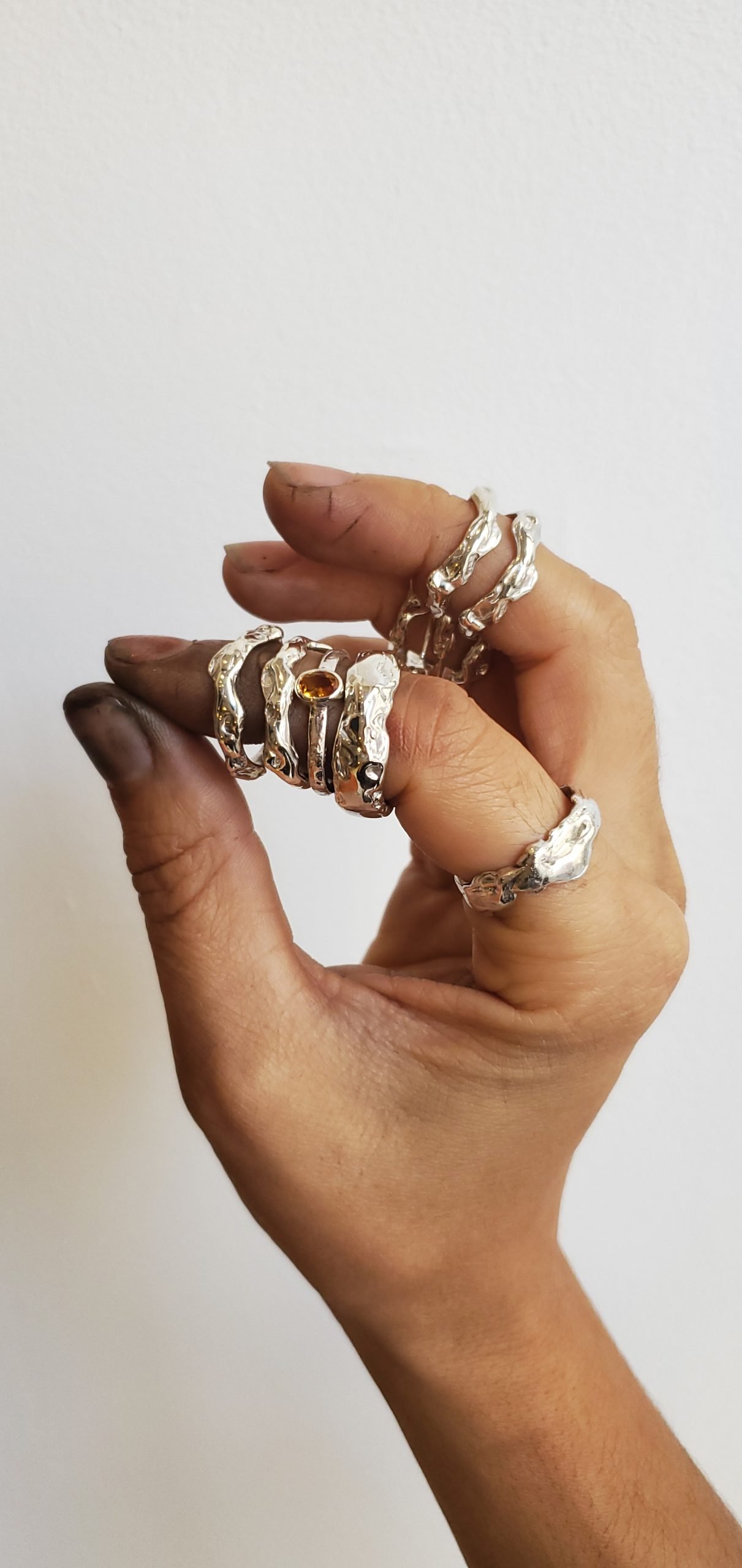 Toutes les pièces sont réalisées à la main, avec un travail méticuleux des textures et des formes. J’utilise les techniques ancestrales de la bijouterie.